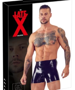 Late X Spodenki lateksowe czarne z anatomicznymi kieszeniami L