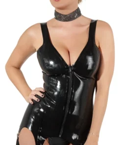 Elegancka koszulka Late X z lateksu w kolorze czarnym to propozycja dla osob ceniących nowoczesny design i wysoką jakość wykonania. Model wykonano z naturalnego lateksu kauczukowego, ktory pięknie dopasowuje się do kształtu sylwetki, podkreślając jej atuty. Funkcjonalny zamek z przodu ułatwia zakładanie i zdejmowanie koszulki, a cztery regulowane paski pozwalają na komfortowe połączenie z pończochami według własnych preferencji. Prosty, minimalistyczny kroj na ramiączkach sprawia, że model prezentuje się stylowo i ponadczasowo.