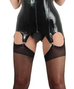 - Model: Koszulka lateksowa czarna z paskami do pończoch