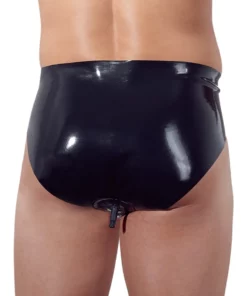 Majtki posiadają ergonomiczne wyprofilowanie na przedniej części, co zapewnia wygodne dopasowanie do sylwetki. Całość wykonana została z naturalnego lateksu o grubości 0,4 mm, zapewniając elastyczność oraz trwałość materiału. Lateks użyty do produkcji to naturalna guma, ktora może powodować reakcje alergiczne u osob wrażliwych – przed użyciem zalecamy zapoznanie się z zaleceniami producenta.