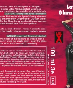 Nowoczesny preparat do pielęgnacji, ktory nadaje strojom lateksowym intensywny połysk oraz przedłuża ich żywotność. Wyprodukowany przez uznaną markę Late X, ten profesjonalny spray tworzy trwałą warstwę ochronną, ktora zabezpiecza lateks przed matowieniem, pękaniem i zniszczeniem. Dzięki starannie opracowanej formule na bazie wysokogatunkowego silikonu, preparat ułatwia zakładanie oraz zdejmowanie odzieży wykonanej z lateksu i lakieru, a także chroni ją przed powstawaniem śladow użytkowania.