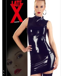 Minimalistyczny, a zarazem efektowny design wzbogacono o niewielki kołnierzyk oraz praktyczny zamek błyskawiczny z tyłu, zapewniający wygodę zakładania i zdejmowania. Grubość lateksu 0,4 mm gwarantuje odpowiednią wytrzymałość i komfort użytkowania. Sukienka została wykonana metodą zanurzeniową, co zapewnia wysoką jakość oraz jednolitą strukturę materiału.