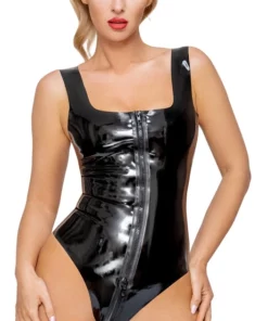 Odkryj stylowe, czarne body LateX z praktycznym zamkiem!