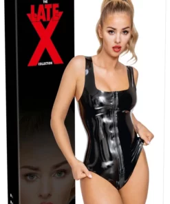 Odkryj stylowe, czarne body LateX z praktycznym zamkiem!