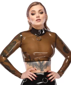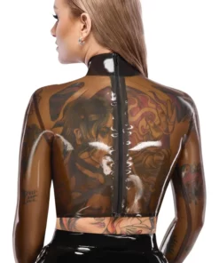 Przedstawiamy koszulkę z długim rękawem marki LateX w rozmiarze XL, wykonaną z wysokogatunkowego naturalnego lateksu w modnym, połprzezroczystym czarnym kolorze. Model został zaprojektowany dla osob poszukujących wyrazistych, oryginalnych elementow garderoby do stylizacji klubowych, modowych lub jako uzupełnienie kolekcji odzieży alternatywnej.