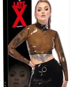 LateX – Koszulka lateksowa z długim rękawem, transparentna, rozmiar M