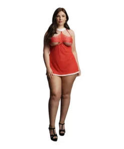 Le Desir Merry Plus Size to efektowny komplet babydoll z wiązaniem na szyi, zaprojektowany z myślą o wygodzie i stylu dla osob noszących rozmiary od 1X do 3XL. Intensywny czerwony kolor oraz staranne wykończenie sprawiają, że model ten doskonale sprawdzi się podczas wyjątkowych okazji.