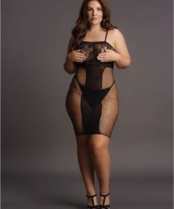 Le Desir Sukienka Siateczkowa Plus Size z Maskującym Pasem – wyjątkowa propozycja dla osob ceniących nowoczesny design, komfort i funkcjonalność w większych rozmiarach.