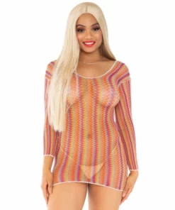 Leg Avenue Mini Sukienka – Tęczowa Siateczka w Zygzaki, Jeden Rozmiar