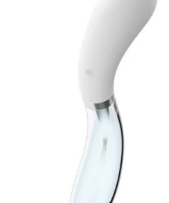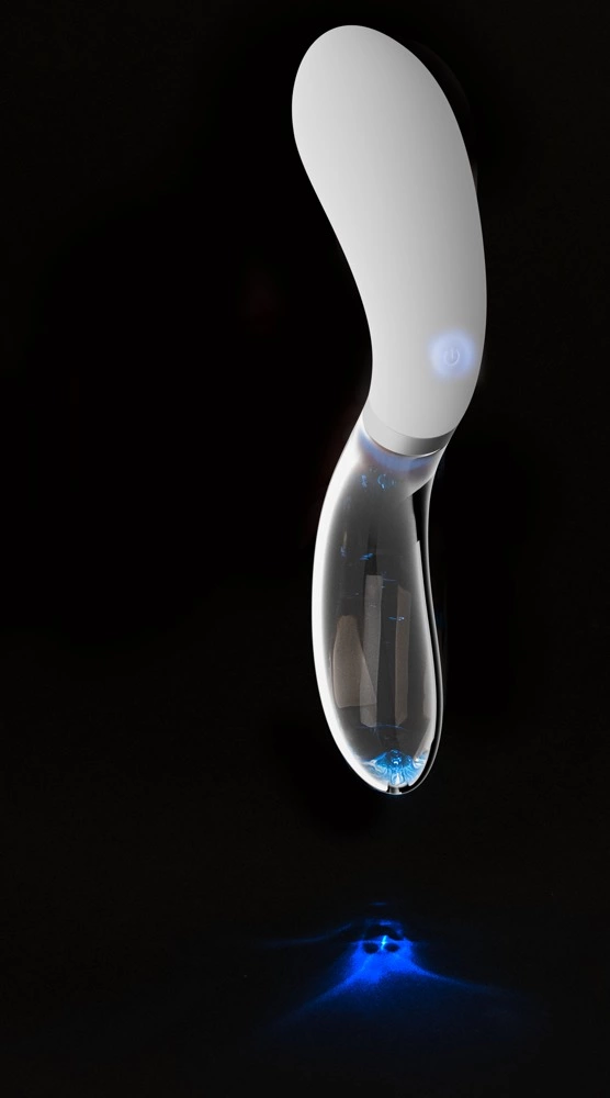 Jedna strona posiada anatomicznie wyprofilowaną, miękką końcowkę silikonową o aksamitnej powierzchni typu soft touch (długość 8,5 cm, średnica do 4,1 cm), a druga – gładką, szklaną końcowkę z podświetleniem LED (długość 8,5 cm, średnica do 3,4 cm). Dzięki temu masz możliwość wyboru pomiędzy dwiema odmiennymi strukturami i temperaturami materiałow, co czyni produkt niezwykle uniwersalnym.