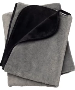 - Dwustronny koc ochronny – szare sztuczne futro i czarna mikrofibra