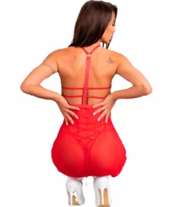 Funkcjonalny i stylowy design: Dopasowana koszulka delikatnie modeluje gorne partie sylwetki, natomiast minimalistyczne stringi dopełniają całość, dbając o wygodę i lekkość. Całość utrzymana jest w klasycznym, intensywnym czerwonym odcieniu, ktory idealnie wpisuje się w świąteczne trendy.