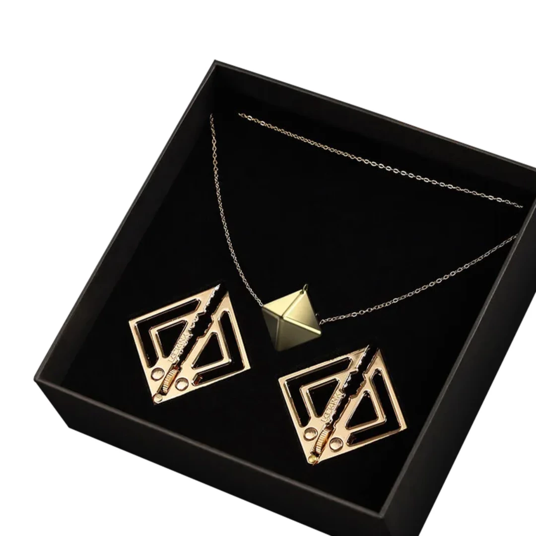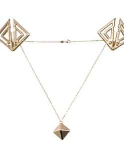 Model wyposażono w wygodny system regulacji – zaciski można łatwo dostosować do indywidualnych potrzeb za pomocą śruby, co pozwala na precyzyjną kontrolę siły docisku. Do zaciskow dołączona jest solidna, metalowa zawieszka w kolorze złotym, ktora pełni rownież funkcję dekoracyjną i znakomicie podkreśla styl całego zestawu. Dzięki możliwości odpięcia zawieszki, można ją także wykorzystać jako przyciągający uwagę element biżuteryjny.