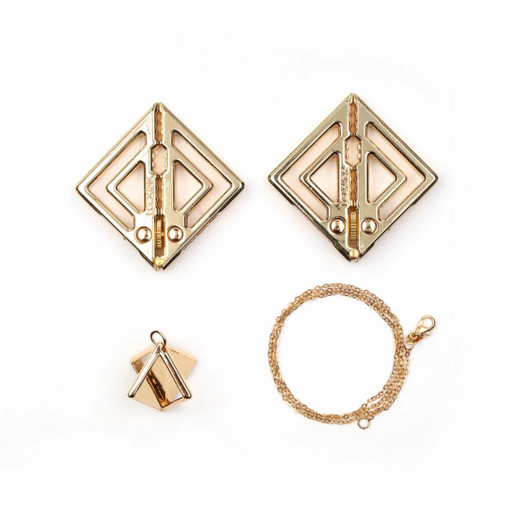 LOCKINK Regulowane zaciski piersi z zawieszką LED w kolorze złotym to połączenie nowoczesnego wzornictwa i praktycznych rozwiązań dla osob poszukujących oryginalnych akcesoriow o wysokiej jakości wykonania. Ten model charakteryzuje się eleganckim wykończeniem oraz dekoracyjnym elementem świetlnym, ktory nadaje całości wyjątkowego charakteru.