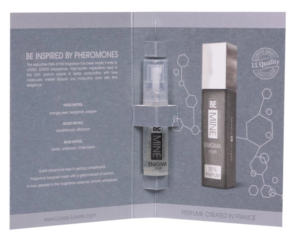 Lovely Lovers BEMINE ENIGMA Perfumy Męskie z Feromonami 2ml – Intensywna Kompozycja Drzewno-Ziołowa