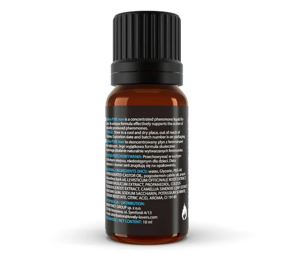 Wyjątkowy produkt marki Lovely Lovers to bezzapachowy koncentrat feromonow stworzony z myślą o nowoczesnych mężczyznach, ktorzy cenią sobie profesjonalny wizerunek oraz skuteczność działania. BeMine Pure Fragrance Man opiera się na innowacyjnej formule, będącej efektem badań nad 107 substancjami zapachowymi, ktore wyselekcjonowano, by uzyskać maksymalną efektywność. Dzięki temu możesz wykorzystać naturalne właściwości feromonow w codziennych sytuacjach – zarowno podczas spotkań biznesowych, jak i towarzyskich.