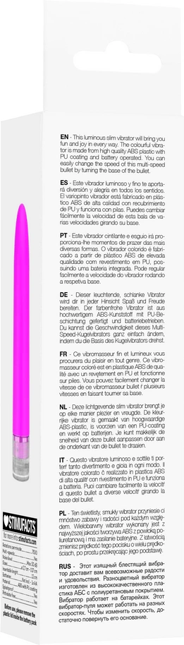 Shots Luminous Eleni to klasyczny model intymny, ktory wyrożnia się smukłą, elegancką formą oraz efektowną, wielokolorową powierzchnią. Został wykonany z wysokiej jakości tworzywa ABS pokrytego miękką powłoką PU, dzięki czemu jest przyjemny w dotyku oraz łatwy do utrzymania w czystości.
