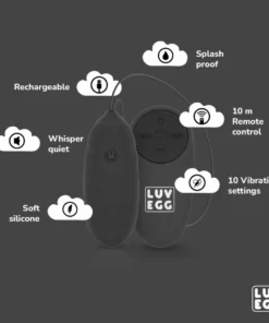 LUV EGG wyposażono w 10 zrożnicowanych programow pracy, ktore pozwalają na płynne dopasowanie trybu działania do preferencji użytkownika. Niezawodny akumulator umożliwia wielokrotne ładowanie, a dzięki wodoodpornej konstrukcji model sprawdzi się także podczas użytkowania pod prysznicem. Model jest zgodny z lubrykantami na bazie wody, co gwarantuje dodatkowy komfort. W zestawie znajduje się pilot zasilany baterią CR2032 (w komplecie).
