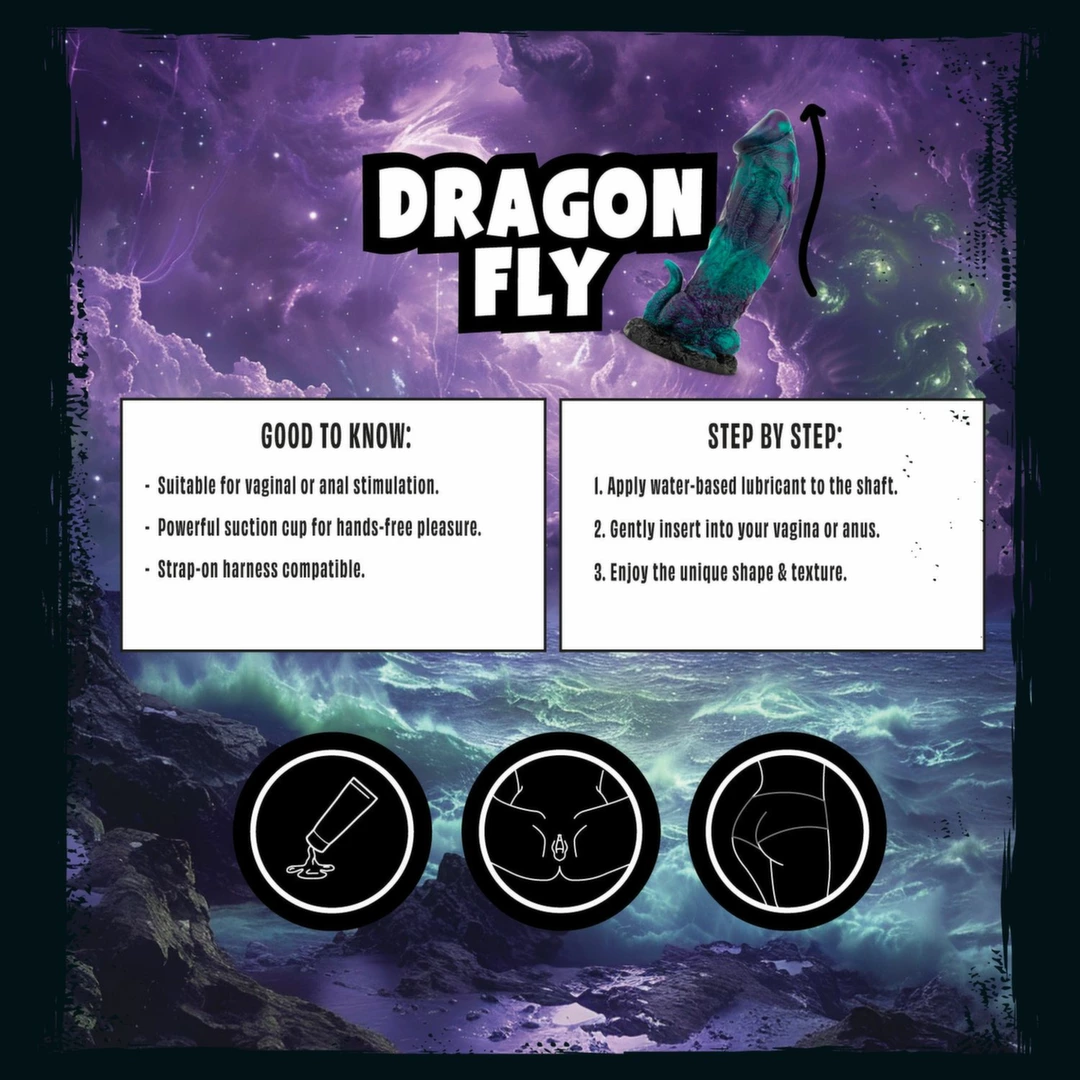 Mythical Mates Dragonfly Model silikonowy fioletowo-zielony anatomiczny to unikalny produkt zaprojektowany z myślą o funkcjonalności oraz wyjątkowej estetyce. Wyrożnia się starannie wykonanym, lekko zakrzywionym profilem, ktory ułatwia komfortowe użytkowanie i precyzyjne dopasowanie do anatomicznych potrzeb.