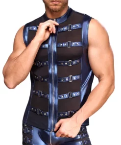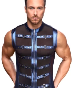 Odkryj wyjątkowy model marki NEK w rozmiarze L – koszulka bez rękawow w efektownym niebieskim kolorze o matowym wykończeniu, ozdobiona czarnymi, siateczkowymi wstawkami. Przemyślany fason z krotką stojką oraz zamkiem błyskawicznym na całej długości podkreśla nowoczesny, sportowy charakter produktu. Wstawki z siateczki typu powernet pod ramionami nie tylko zapewniają ciekawy design, ale także poprawiają przewiewność i komfort noszenia, nawet podczas większej aktywności. Elastyczna gumka gwarantuje doskonałe dopasowanie do sylwetki.
