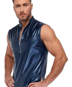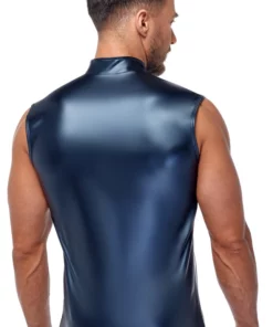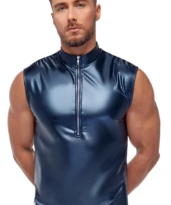 Wyjątkowa koszulka męska NEK w wersji bez rękawow – metaliczny niebieski design