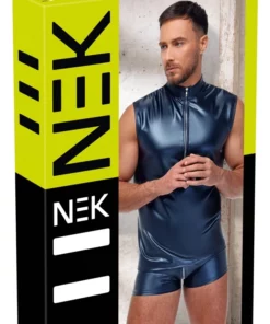 Nowoczesny styl i wyjątkowy charakter – koszulka męska NEK bez rękawow w kolorze metalicznego, matowego niebieskiego to idealne połączenie komfortu i oryginalności. Model wyrożnia się błyszczącą, metaliczną powierzchnią o matowym wykończeniu, ktora przyciąga uwagę i podkreśla sylwetkę.