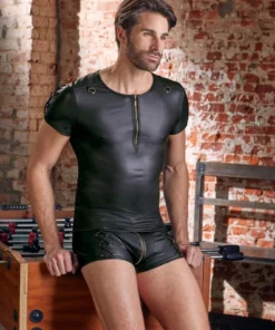 - Model: Czarna koszulka męska matowa ze sznurowaniem