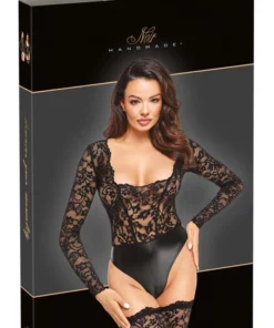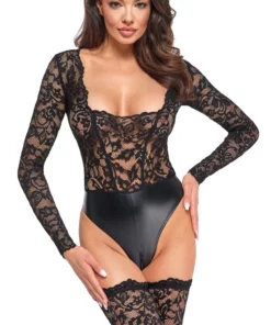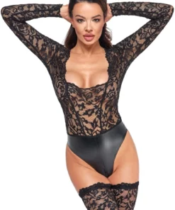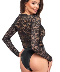 Odkryj ekskluzywny model marki Noir, ktory łączy subtelność koronkowej gory z nowoczesnym, matowym wykończeniem dołu. Body zostało wyposażone w długi rękaw oraz praktyczny, dyskretny zamek w dolnej części, co czyni je nie tylko atrakcyjnym wizualnie, ale rownież funkcjonalnym wyborem na każdą okazję.