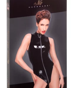 Prezentujemy stylowy, jednoczęściowy model marki Noir, wykonany z wysokiej jakości czarnego winylu o intensywnym połysku. Body zostało zaprojektowane z myślą o osobach, ktore cenią wyrazistą estetykę oraz komfort użytkowania. Nowoczesny kroj bez rękawow oraz wysokie wycięcia optycznie wydłużają nogi i podkreślają sylwetkę. Charakterystycznym elementem produktu jest efektowny metalowy zamek błyskawiczny w srebrnym kolorze, ktory biegnie przez całą długość stroju – od stojki na szyi, przez środkową część, aż po dolną krawędź. System zamka umożliwia wygodne otwieranie zarowno od gory, jak i od dołu, zapewniając pełną funkcjonalność oraz łatwość zakładania i zdejmowania.