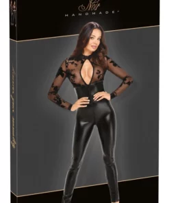 Odkryj wyjątkowy kombinezon marki Noir Handmade w rozmiarze L, ktory łączy elegancki, czarny power wetlook z subtelnym, transparentnym tiulowym topem. Model ten zachwyca dopracowanym, anatomicznym krojem oraz wysoką jakością wykonania. Długie rękawy i nogawki oraz wyraźnie podkreślona linia sylwetki nadają całości unikatowego charakteru. Gładka, miękka powierzchnia materiału oraz elastyczność na całej długości zapewniają idealne dopasowanie i komfort użytkowania.