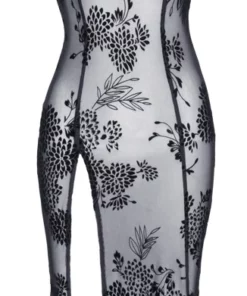 Noir Długa Sukienka Prześwitująca Czarna L z Kwiatowym Wzorem – Elegancja i Wyrazistość w Jednym