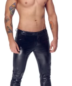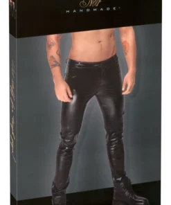 Dzięki zastosowanej powłoce polimerowej materiał zyskuje matowe wykończenie, ktore prezentuje się elegancko i przyciąga uwagę. Spodnie idealne na wieczorne wyjścia, imprezy lub jako mocny akcent w codziennej stylizacji.