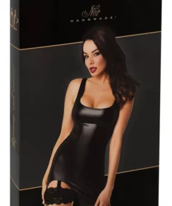 Charakterystycznym elementem tego modelu jest wycięcie z przodu po boku oraz subtelnie wszyty pasek do pończoch, pod ktorym umieszczono dekoracyjny, koronkowy pas. Całość podkreślają cienkie ramiączka, ktore dodają kreacji lekkości i elegancji. Sukienka została wykonana z miękkiego, przyjemnego w dotyku materiału, ktory zapewnia optymalne dopasowanie do sylwetki.
