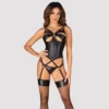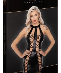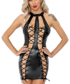 Odkryj wyjątkową, krotką sukienkę marki Noir, wykonaną z wysokogatunkowego materiału powerwetlook w eleganckim, czarnym kolorze. Ten model cechuje się dopasowanym krojem podkreślającym sylwetkę oraz oryginalnym sznurowaniem z przodu, ktore umożliwia indywidualną regulację i idealne dopasowanie do figury.