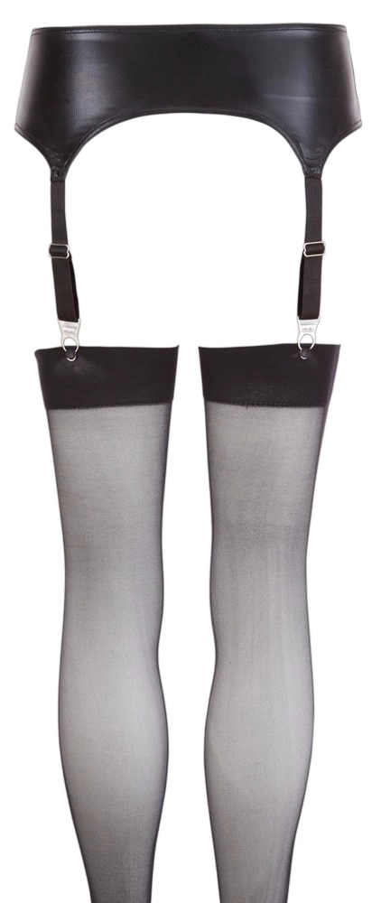 NO:XQSE Czarny komplet pas do pończoch z pończochami XL matowy