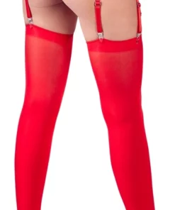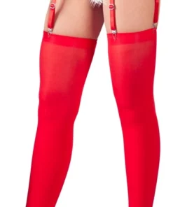 Do zestawu dołączono rownież dopasowane, czerwone pończochy, tworzące spojną i efektowną całość. Uniwersalny design umożliwia łączenie kompletu z rożnymi stylizacjami, zarowno codziennymi, jak i okazjonalnymi.