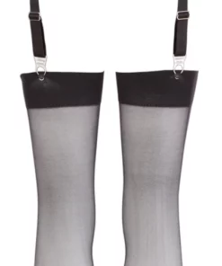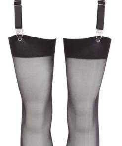Pas wyposażony jest w solidne, metalowe szelki, ktore gwarantują pewność mocowania oraz trwałość podczas użytkowania. Do kompletu dołączone są idealnie dopasowane czarne pończochy, wykonane z wysokiej jakości materiału, ktory zapewnia przyjemne odczucie na skorze oraz wytrzymałość.