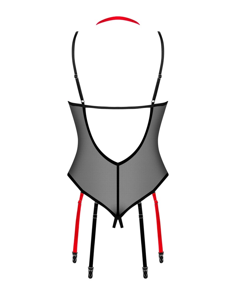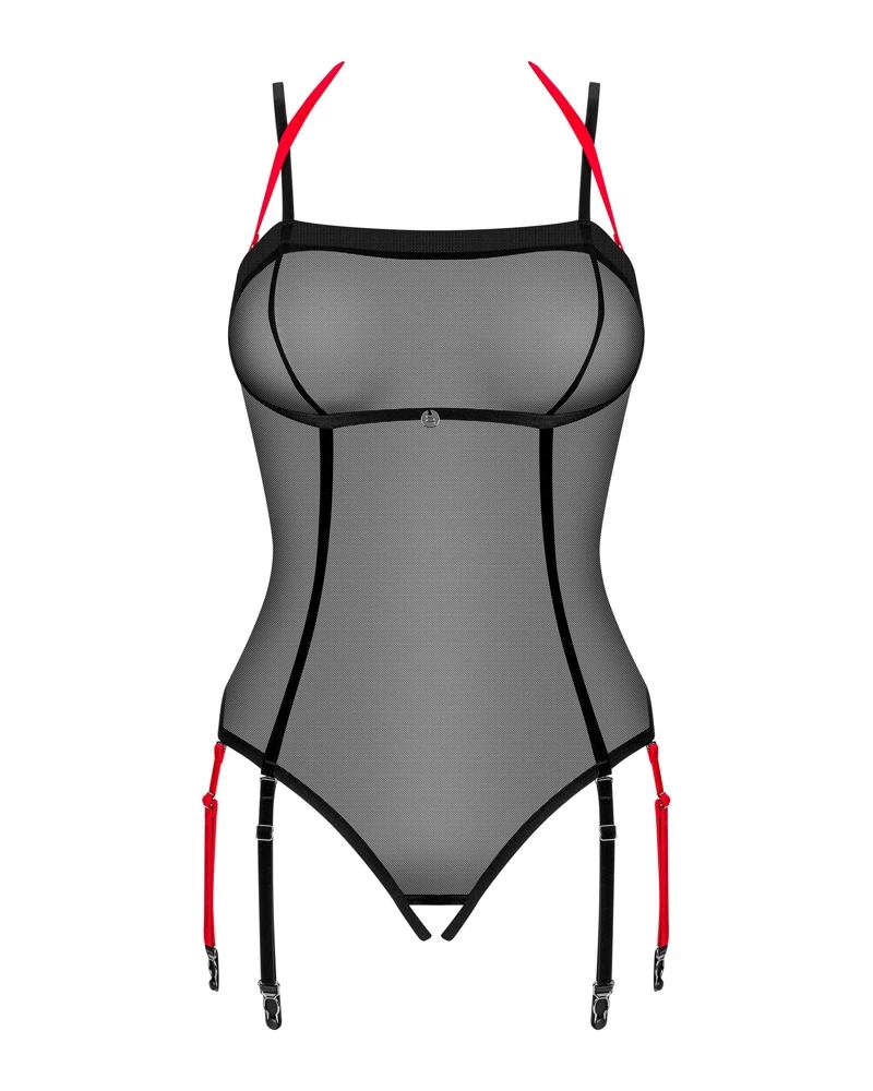 Połprzezroczyste body marki Obsessive model Glandez to propozycja dla osob poszukujących odważnych i efektownych rozwiązań w garderobie. Wyrożnia się innowacyjnym systemem odpinanych paskow do pończoch, ktore można dostosować według indywidualnych potrzeb. Anatomiczny kroj zapewnia wygodę użytkowania oraz komfort noszenia.