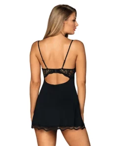 Przedstawiamy model Luvae marki Obsessive – elegancki komplet bielizny, ktory wyrożnia się subtelnym połączeniem delikatnej koronki, efektownych wycięć i dopracowanych detali. Zestaw składa się z lekkiej babydoll na cienkich, regulowanych ramiączkach oraz pasujących, czarnych stringow. Wysoka jakość tkanin oraz innowacyjny system Multistretch sprawiają, że model idealnie dopasowuje się do sylwetki, zapewniając komfort i atrakcyjny wygląd.