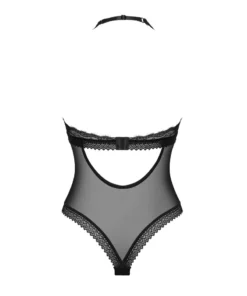 Prezentujemy czarne siateczkowe body marki Obsessive z kolekcji Medilla, stworzone dla osob ceniących wyrafinowaną estetykę oraz komfort użytkowania. Model ten wykonano z nowoczesnej, elastycznej tkaniny, ktora znakomicie dopasowuje się do sylwetki. Transparentny materiał został uzupełniony subtelną koronką, a miseczki częściowo usztywniono oraz wykończono nieprześwitującą warstwą tekstylną. Dodatkową ozdobę stanowi biżuteryjny detal umieszczony między miseczkami.