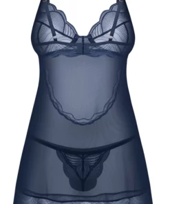 Odkryj niezwykłe połączenie elegancji oraz komfortu dzięki kompletowi Obsessive Nightly Blue, ktory zachwyca nowoczesnym designem w szlachetnym niebieskim odcieniu. Model ten składa się z krotkiego, rozkloszowanego peniuaru oraz dopasowanych stringow, tworząc spojną, stylową całość dla osob ceniących wyrafinowaną bieliznę nocną.