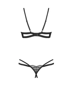 - Zestaw dwuczęściowy: biustonosz z fiszbinami i stringi o otwartym kroju