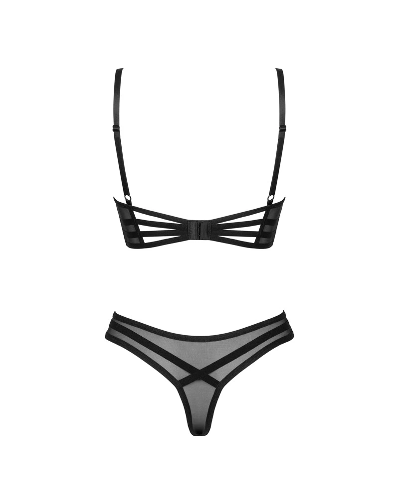 Przedstawiamy elegancki zestaw Roxelia marki Obsessive, stworzony z myślą o osobach ceniących styl i wygodę. Komplet składa się z biustonosza z długim rękawem oraz wysokich stringow, wykonanych z transparentnego tiulu i elastycznego, kryjącego materiału. Starannie dobrane tkaniny zapewniają komfort oraz swobodę użytkowania, a nowoczesny design podkreśla charakter modelu.