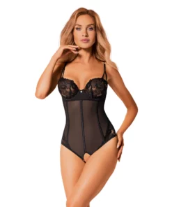 Model Serena Love marki Obsessive to wyjątkowa propozycja dla osob ceniących subtelną elegancję i wygodę. Body zostało wykonane z wysokiej jakości, miękkiej w dotyku siateczki oraz delikatnej, kwiatowej koronki, ktora podkreśla walory sylwetki. Dzięki regulowanym ramiączkom oraz praktycznemu zapięciu z tyłu, model gwarantuje indywidualne dopasowanie do każdej figury. Fason typu string optycznie wydłuża nogi, a wygodne paski na pośladkach pozwalają na precyzyjną regulację.