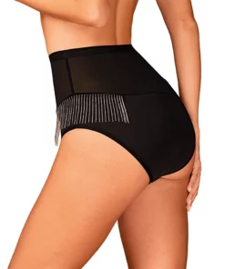 Odkryj elegancką bieliznę stworzoną z myślą o wyjątkowych okazjach. Model Milladis marki Obsessive to wysokie figi, ktore zachwycają nowoczesnym wzornictwem i dopracowanymi detalami. Wyrożniają się zmysłowo prześwitującą siateczką, ktora subtelnie otula sylwetkę, podkreślając jej linię. Boczne wykończenia zostały ozdobione rzędami srebrzystych koralikow, nadając całości efekt biżuteryjny i niepowtarzalny styl. Uwagę przyciąga także elegancka zawieszka umieszczona z przodu, dodająca wyrafinowania.