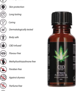 PharmQuests CBD Intimate Oil 20ml to nowoczesny kosmetyk stworzony z myślą o kompleksowej pielęgnacji skory wrażliwej. Opracowany na bazie naturalnych składnikow, zawiera wysokiej jakości olej z nasion konopi oraz ekstrakt CBD, co czyni go niemal całkowicie roślinną formułą. Produkt nie zawiera sztucznych substancji zapachowych ani konserwantow, takich jak parabeny, gwarantując bezpieczeństwo nawet dla bardzo delikatnej skory.