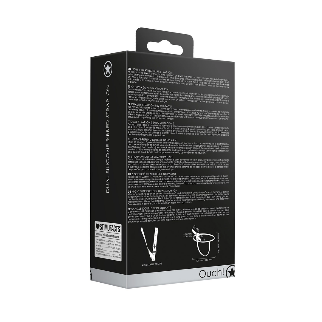 Wysokiej jakości, jedwabiście gładki silikon klasy medycznej gwarantuje komfort użytkowania oraz łatwość w utrzymaniu czystości. Podwojny system wibracji uruchamiany jest za pomocą intuicyjnych przyciskow, ktore dbają o bezpieczeństwo i stabilność podczas użytkowania. Regulowany pasek pozwala dopasować produkt do rożnych sylwetek, zapewniając indywidualne dopasowanie.