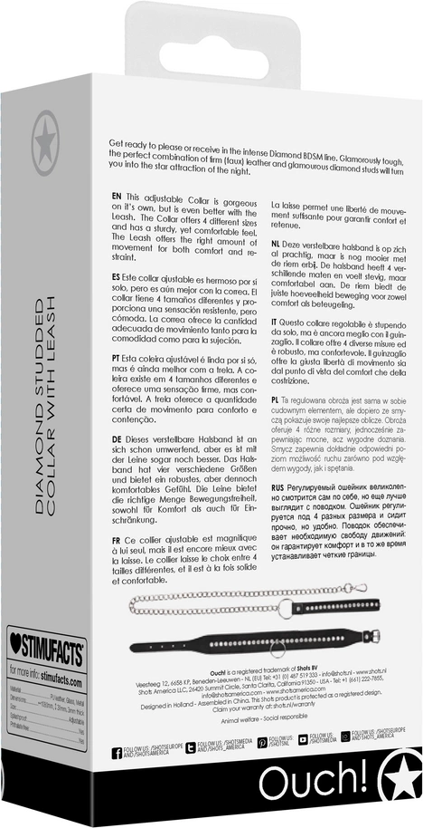 Ouch! Diamond Collection – obroża z diamentowymi elementami i smyczą to wyjątkowy zestaw, ktory wyrożnia się eleganckim designem oraz solidnym wykonaniem. Model ten został stworzony z myślą o osobach ceniących stylowe akcesoria oraz wysoką jakość materiałow.