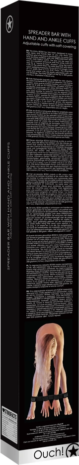 Model Ouch! to wysokiej jakości stalowy drążek rozporowy z praktycznymi, regulowanymi mankietami na ręce i kostki. Zaprojektowany z myślą o zapewnieniu stabilności oraz możliwości łatwej modyfikacji ułożenia użytkownika. Dzięki solidnej konstrukcji oraz funkcjonalnym detalom, doskonale sprawdzi się podczas zaawansowanych scenariuszy związanych z kontrolą ruchow.