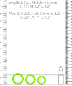 Każdy pierścień w zestawie rożni się rozmiarem, co pozwala na indywidualny dobor odpowiedniego wariantu. Produkt został wykonany z wysokiej jakości, miękkiego i elastycznego materiału, zapewniającego komfort użytkowania oraz łatwe dopasowanie do rożnych potrzeb. Model ten jest łatwy w utrzymaniu w czystości, a jego odporność na rozciąganie gwarantuje długotrwałe użytkowanie.